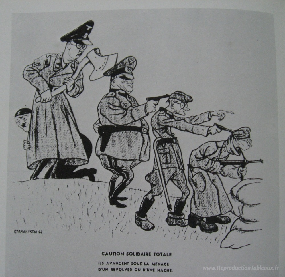 Nous vous proposons une reproduction artisanale sur toile du célèbre tableau 'Sans titre' de Kukryniksy, provenant du Musée de la Reproduction.