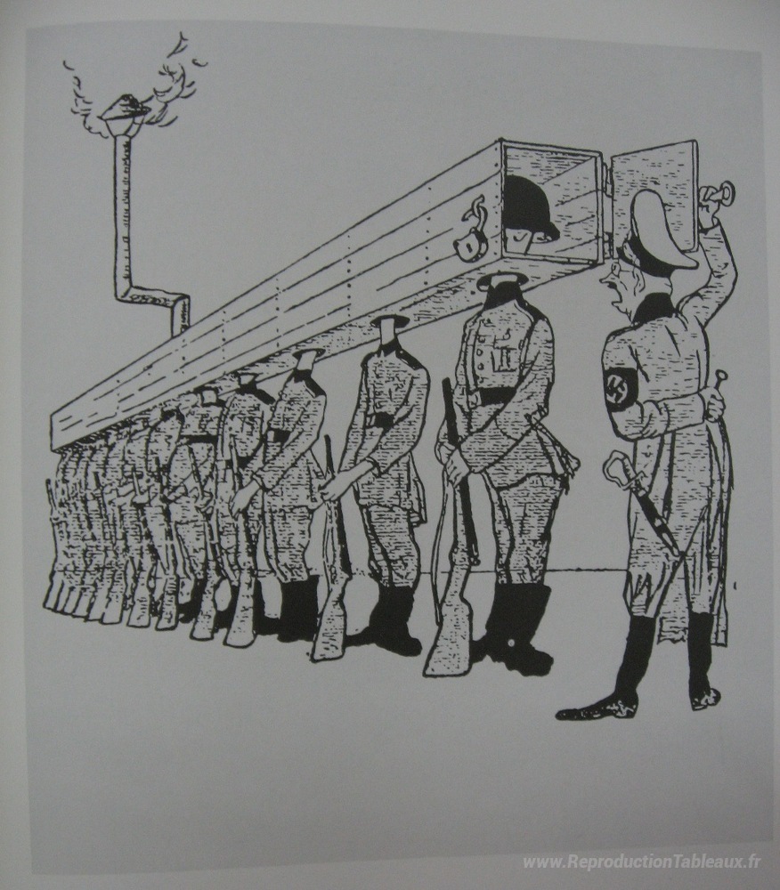 Nous vous proposons une reproduction artisanale sur toile du célèbre tableau 'Sans titre' de Kukryniksy, provenant du Musée de la Reproduction.