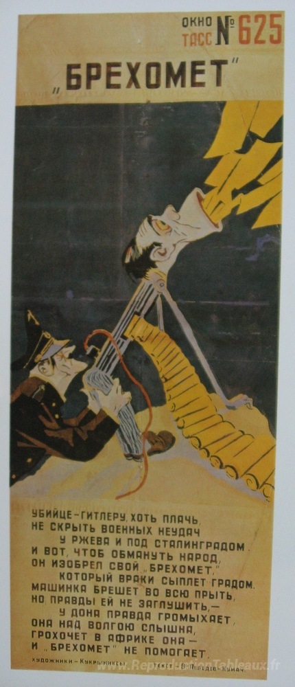 Bienvenue dans notre collection exclusive de reproductions d'œuvres d'art, où l'élégance des peintures à l'huile rencontre le talent exceptionnel d'artistes mondialement reconnus. Découvrez la fascinante œuvre Un lonomage (la fenêtre Tass №625), réalisée par le célèbre collectif d'artistes Kukryniksy. Leur style audacieux et original, alliant réalisme et surréalisme, vous transporte dans un univers où l'imaginaire prend vie à chaque coup de pinceau.