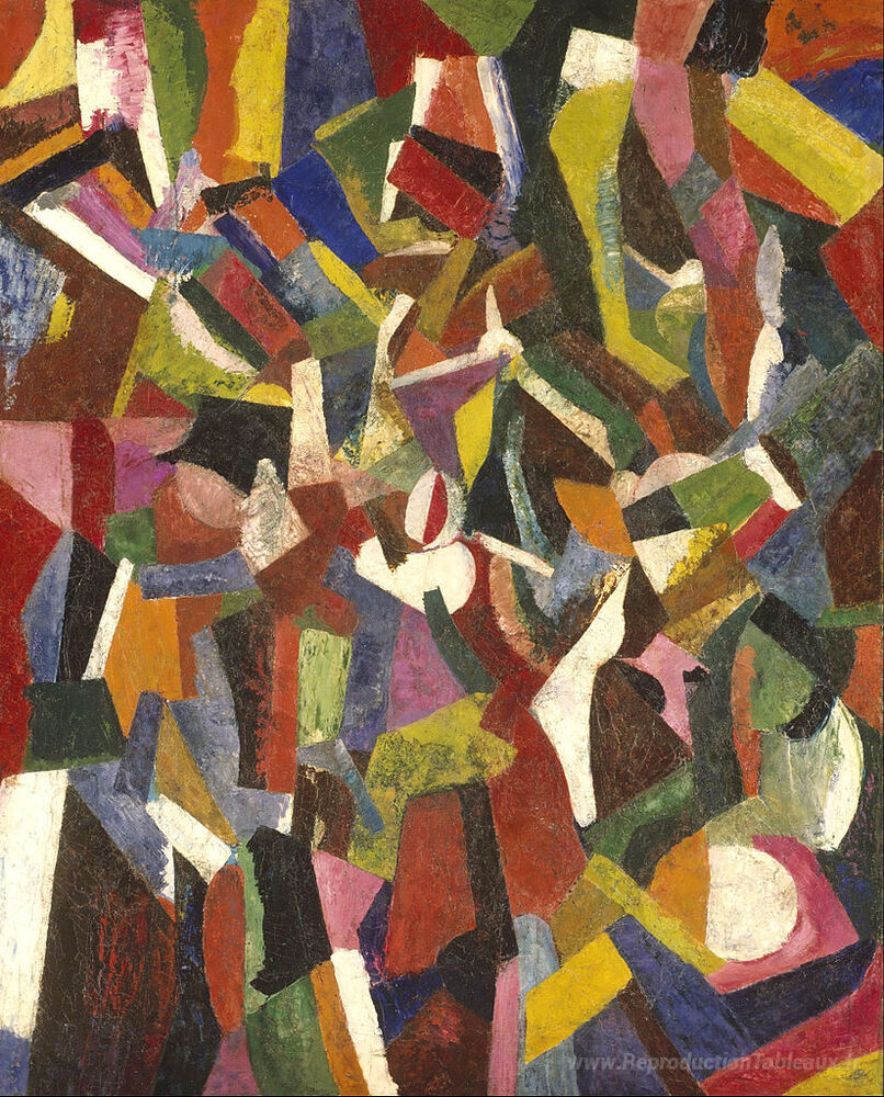 Nous vous proposons une reproduction artisanale sur toile du célèbre tableau 'Composizione VI' de Patrick Henry Bruce, provenant du Musée de la Reproduction.