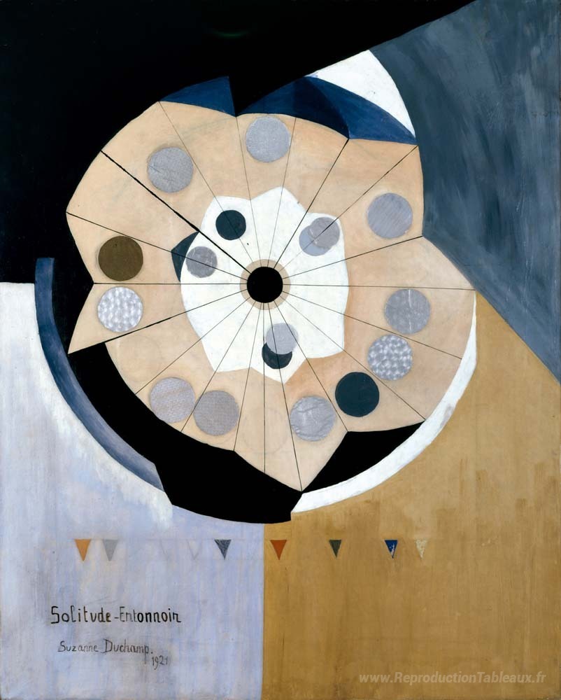 Nous vous proposons une reproduction artisanale sur toile du célèbre tableau 'Entonnoir de solitude (entonnoir de solitude)' de Suzanne Duchamp, provenant du Musée de la Reproduction.