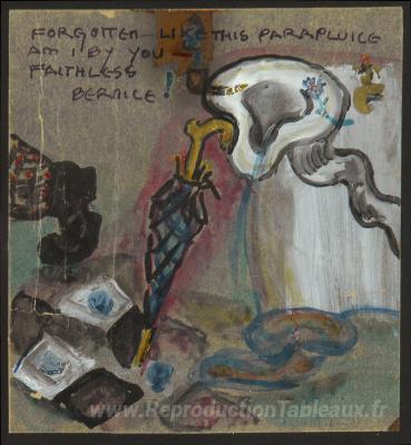 Nous vous proposons une reproduction artisanale sur toile du célèbre tableau 'Oublié comme cette parapluie suis-je par toi - Bernice infidèle' de Elsa von Freytag-Loringhoven, provenant du Musée de la Reproduction.