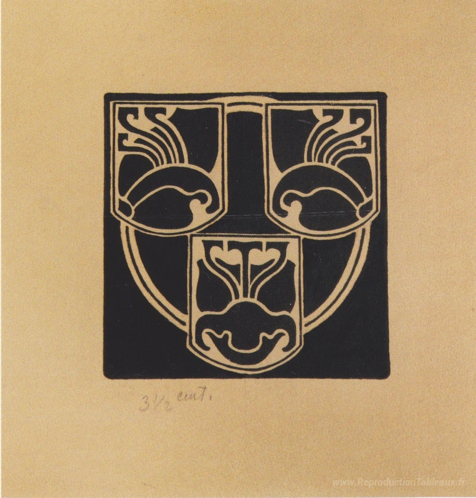 Nous vous proposons une reproduction artisanale sur toile du célèbre tableau 'Ébauche de l'emblème par l'Association des artistes autrichiens ' de Koloman Moser, provenant du Musée de la Reproduction.