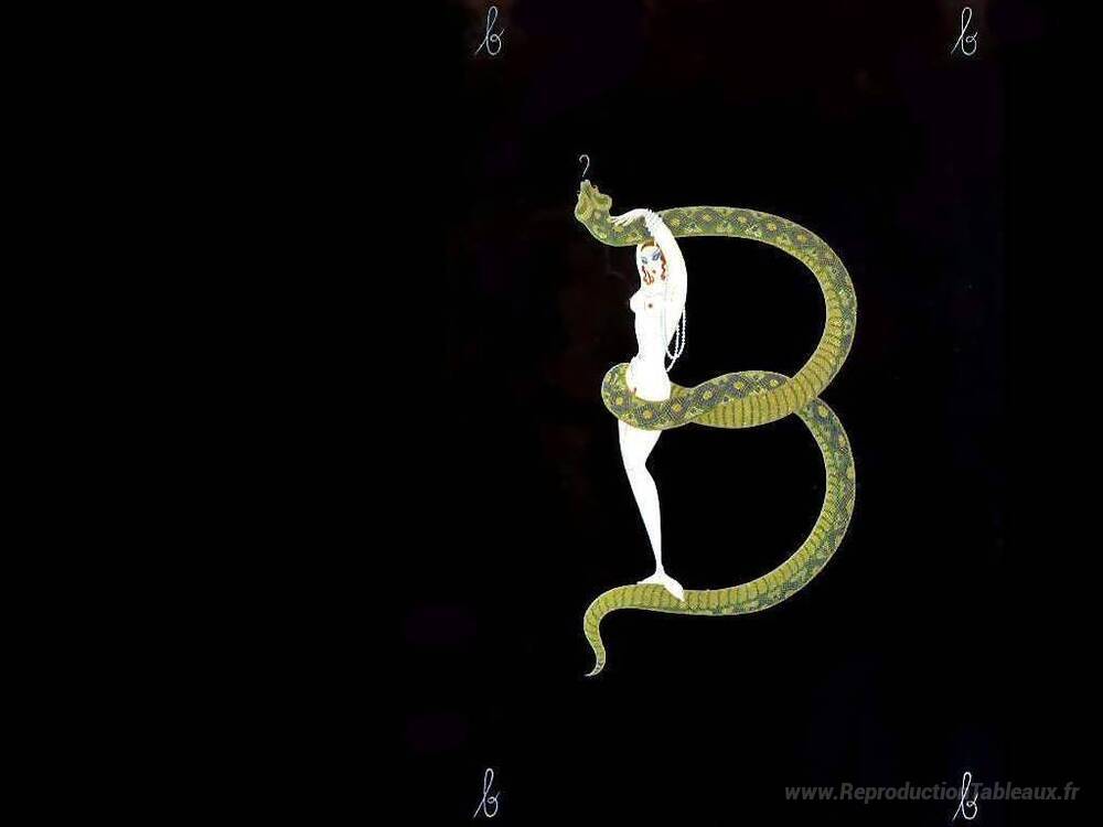 Nous vous proposons une reproduction artisanale sur toile du célèbre tableau 'Alfabeto B' de Erte, provenant du Musée de la Reproduction.
