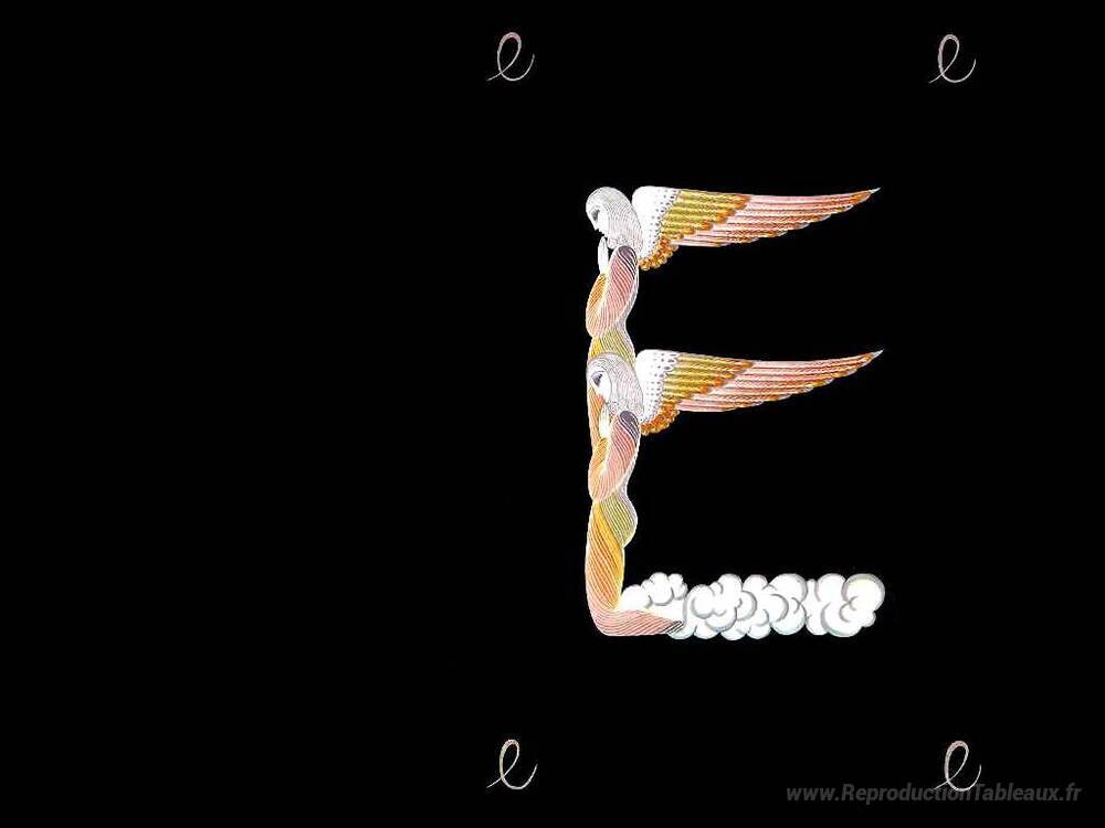 Nous vous proposons une reproduction artisanale sur toile du célèbre tableau 'Alfabeto E' de Erte, provenant du Musée de la Reproduction.