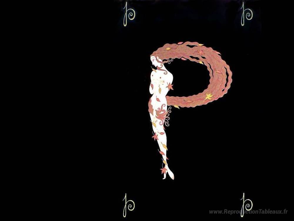 Nous vous proposons une reproduction artisanale sur toile du célèbre tableau 'Alfabeto P' de Erte, provenant du Musée de la Reproduction.