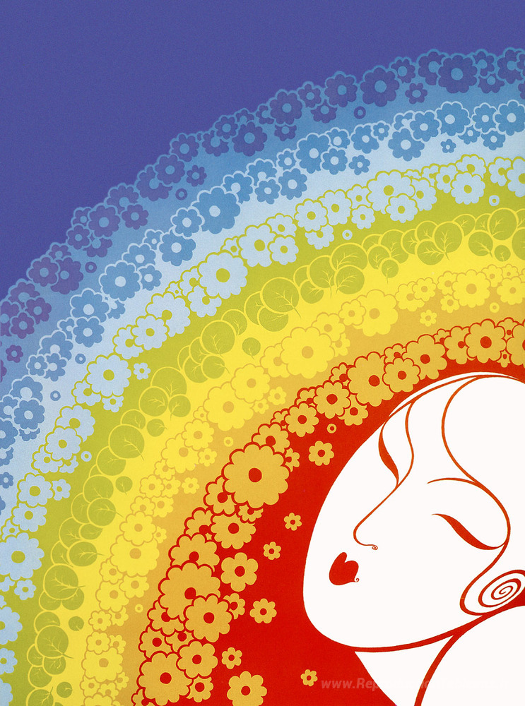 Nous vous proposons une reproduction artisanale sur toile du célèbre tableau 'Arc-en-ciel en fleur' de Erte, provenant du Musée de la Reproduction.