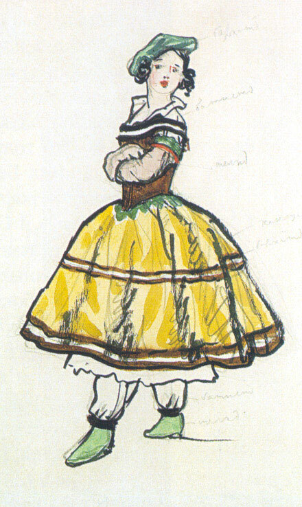 Nous vous proposons une reproduction artisanale sur toile du célèbre tableau 'Ballerine. Conception de costumes' de Alexandre Benois, provenant du Musée de la Reproduction.