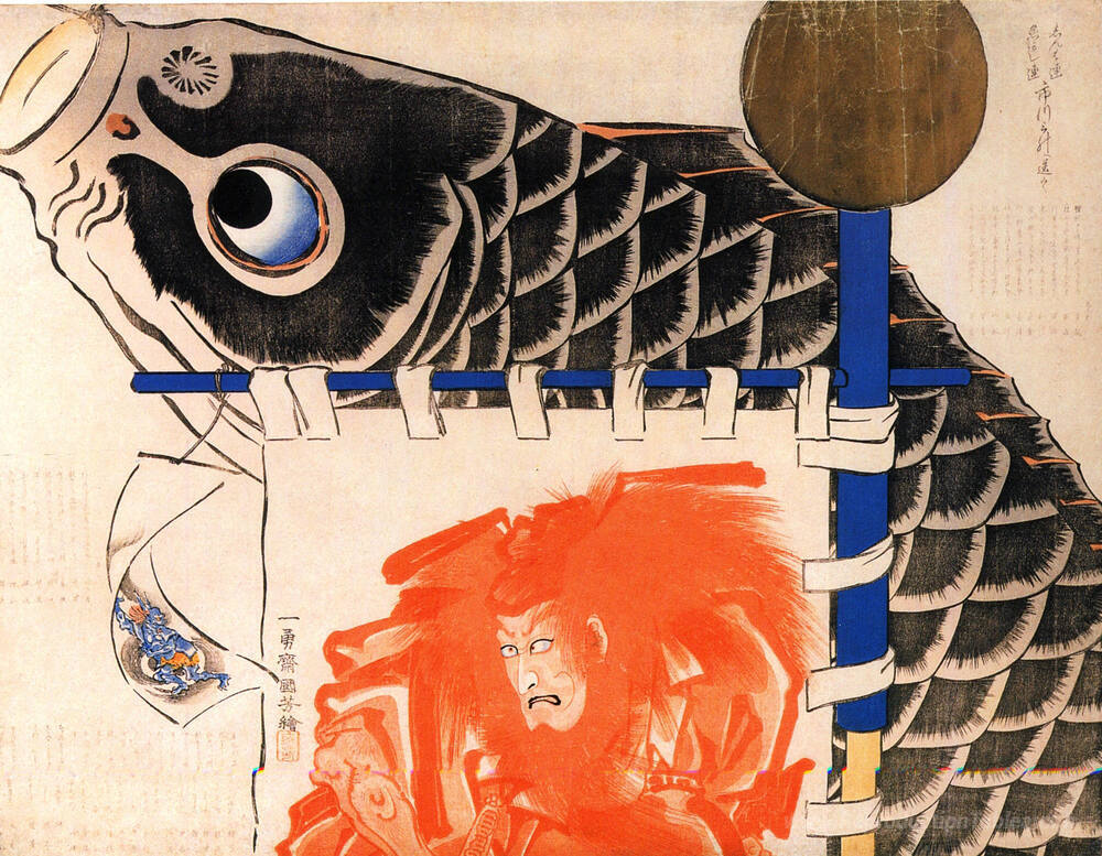 Nous vous proposons une reproduction artisanale sur toile du célèbre tableau 'Banners pour le festival des garçons' de Utagawa Kuniyoshi, provenant du Musée de la Reproduction.