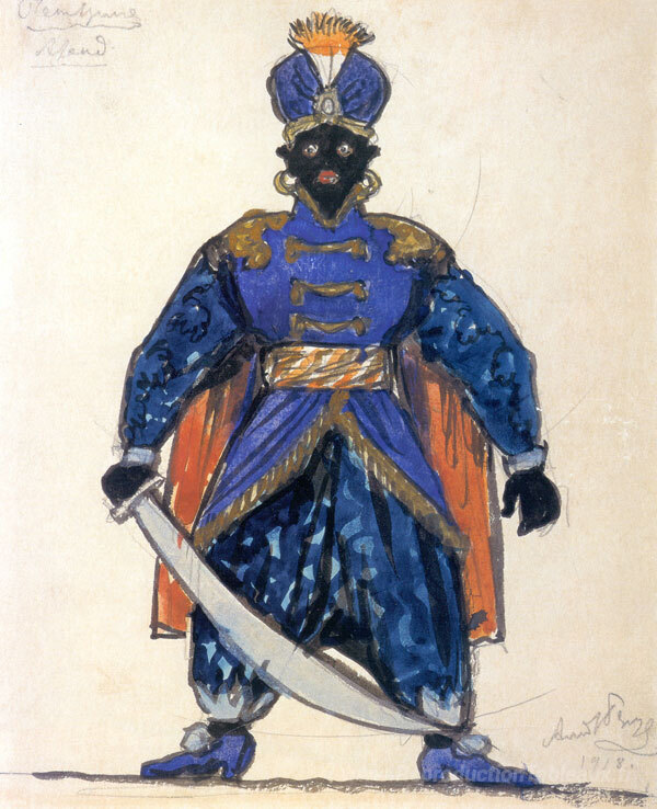 Nous vous proposons une reproduction artisanale sur toile du célèbre tableau 'Blackamoor. Conception de costumes' de Alexandre Benois, provenant du Musée de la Reproduction.