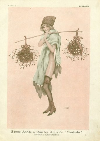 Nous vous proposons une reproduction artisanale sur toile du célèbre tableau 'Bonne année' de Raphael Kirchner, provenant du Musée de la Reproduction.