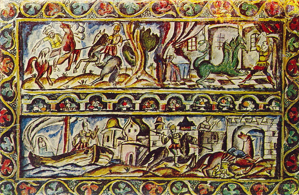 Nous vous proposons une reproduction artisanale sur toile du célèbre tableau 'Bova le prince '. Croquis d'une image.' de Pyotr Konchalovsky, provenant du Musée de la Reproduction.