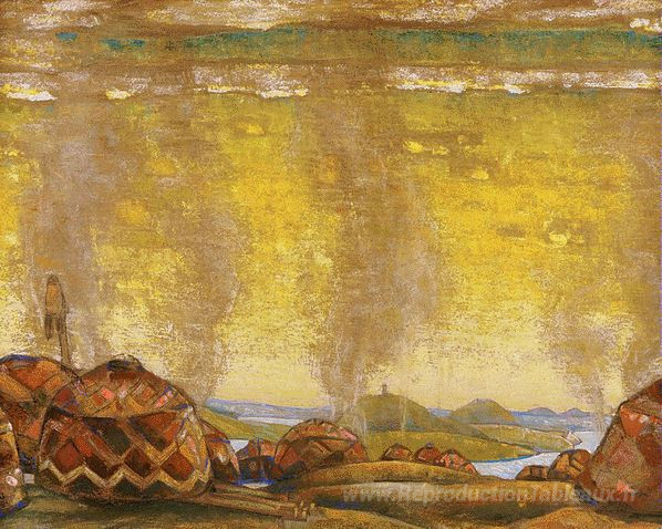 Nous vous proposons une reproduction artisanale sur toile du célèbre tableau 'Camp polovtsien' de Nicholas Roerich, provenant du Musée de la Reproduction.