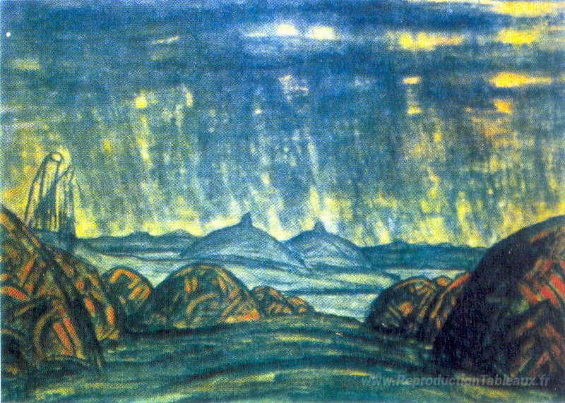 Nous vous proposons une reproduction artisanale sur toile du célèbre tableau 'Camp polovtsien' de Nicholas Roerich, provenant du Musée de la Reproduction.