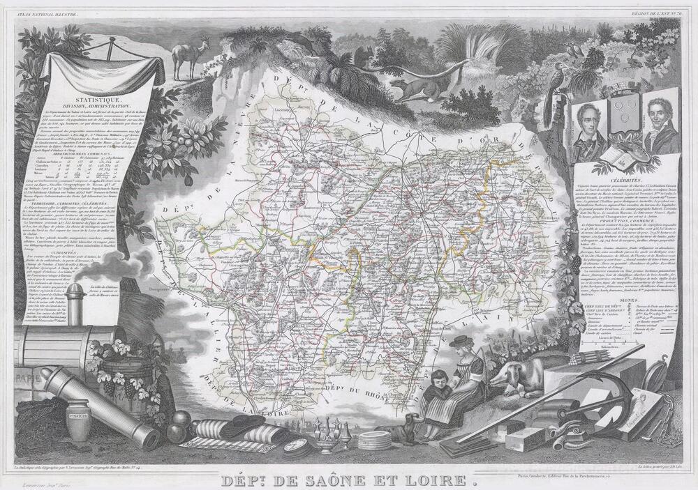 Nous vous proposons une reproduction artisanale sur toile du célèbre tableau 'Carte de la région du Saône et de la Loire en France' de Pierre-Paul Prud'hon, provenant du Musée de la Reproduction.