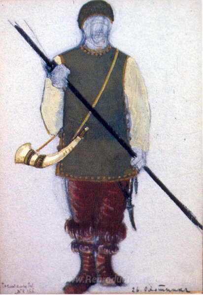 Nous vous proposons une reproduction artisanale sur toile du célèbre tableau 'Chasseur' de Nicholas Roerich, provenant du Musée de la Reproduction.