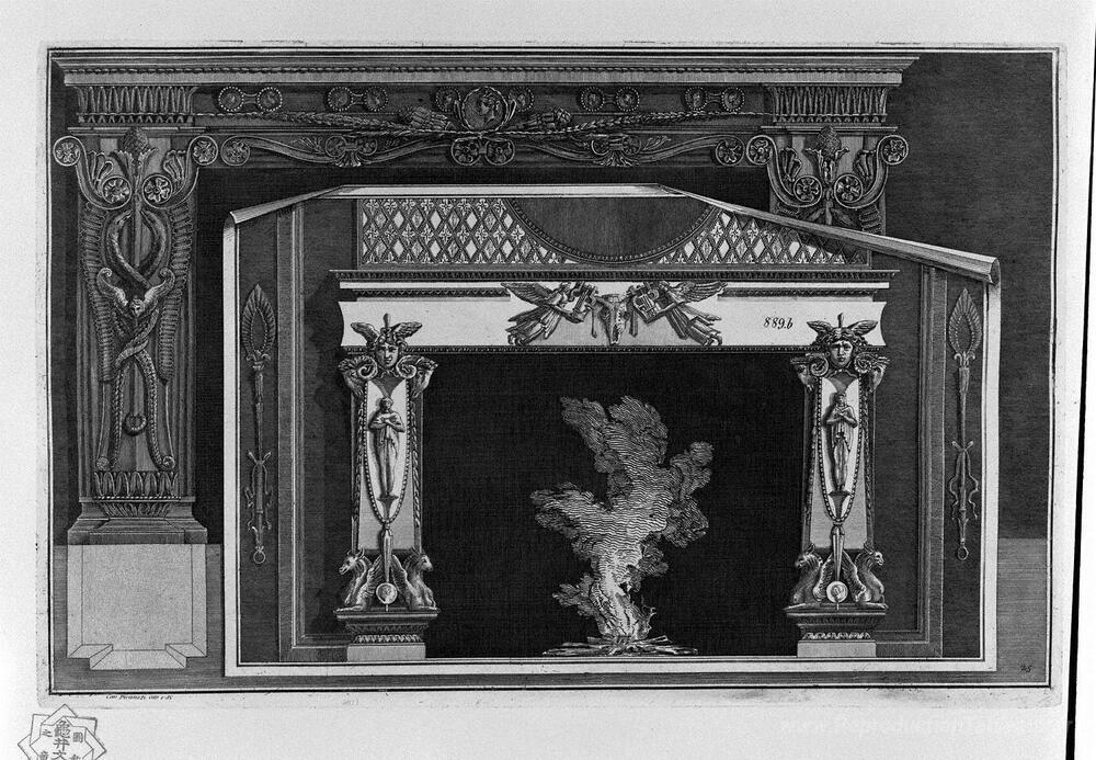 Nous vous invitons à découvrir une pièce maîtresse de l'art classique : Cheminée avec frise de camées, réalisée par le célèbre artiste Giovanni Battista Piranesi. Ce chef-d'œuvre illustre parfaitement le style distinctif de Piranesi, qui allie finesse architecturale et sensibilité artistique. Sa maîtrise des détails et des ombres capte l’œil et transporte le spectateur dans un univers de beauté intemporelle.