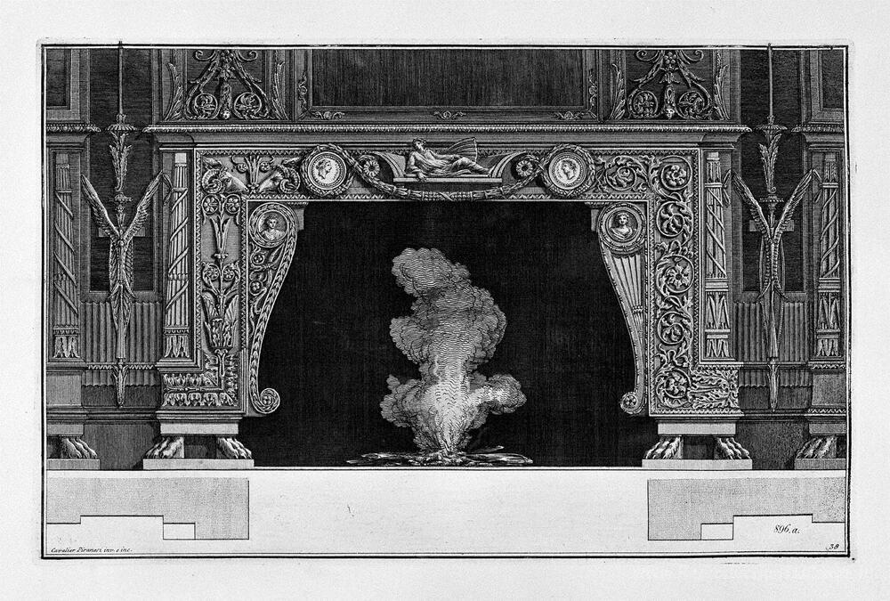 Nous vous proposons une reproduction artisanale sur toile du célèbre tableau 'Cheminée: Deux médailles dans la frise de Garlanded une silhouet' de Giovanni Battista Piranesi, provenant du Musée de la Reproduction.