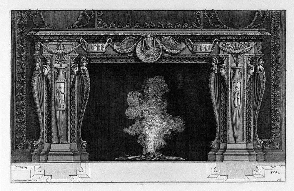 Nous vous proposons une reproduction artisanale sur toile du célèbre tableau 'Cheminée: navires dans la frise et les côtés, les paumes et les ' de Giovanni Battista Piranesi, provenant du Musée de la Reproduction.