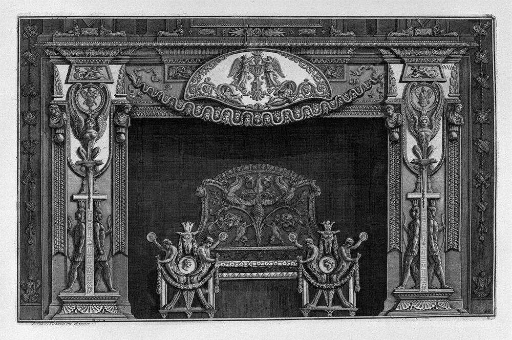 Nous vous proposons une reproduction artisanale sur toile du célèbre tableau 'Cheminée: trophées avec sphinx sur les côtés, auxquels les deux ' de Giovanni Battista Piranesi, provenant du Musée de la Reproduction.