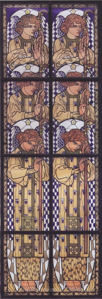 Nous vous proposons une reproduction artisanale sur toile du célèbre tableau 'Church Am Steinhof, dessin de l'ange dans la fenêtre côté gauche' de Koloman Moser, provenant du Musée de la Reproduction.