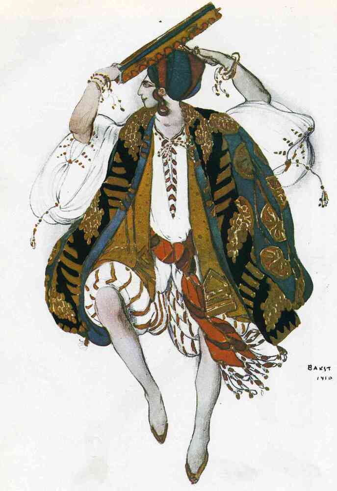 Nous vous proposons une reproduction artisanale sur toile du célèbre tableau 'Cléopâtre Danse Juive' de Leon Bakst, provenant du Musée de la Reproduction.