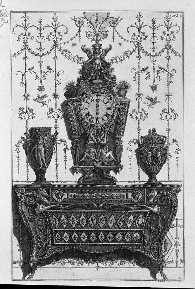 Nous vous proposons une reproduction artisanale sur toile du célèbre tableau 'Coffre de tiroirs avec motifs de diamants, sur une horloge et de' de Giovanni Battista Piranesi, provenant du Musée de la Reproduction.