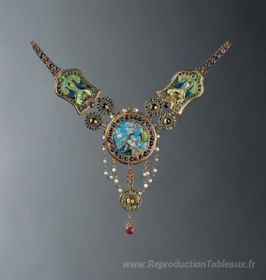 Nous vous proposons une reproduction artisanale sur toile du célèbre tableau 'Collier' de Louis Comfort Tiffany, provenant du Musée de la Reproduction.