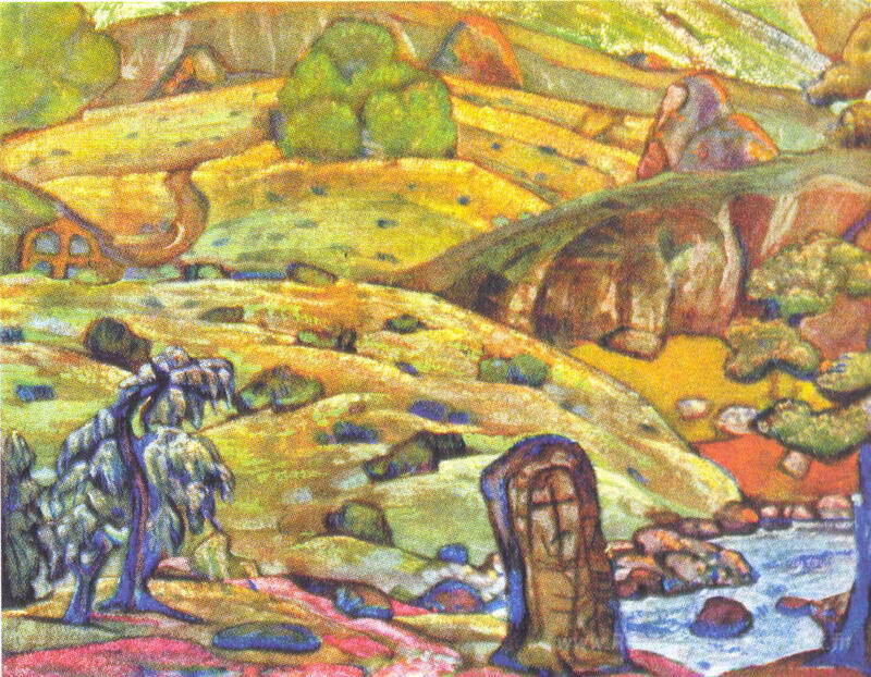 Nous vous proposons une reproduction artisanale sur toile du célèbre tableau 'Collines' de Nicholas Roerich, provenant du Musée de la Reproduction.