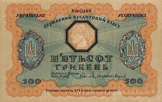 Nous vous proposons une reproduction artisanale sur toile du célèbre tableau 'Conception de cinq cents Hryvnias Bill de la République national' de Heorhiy Narbut, provenant du Musée de la Reproduction.