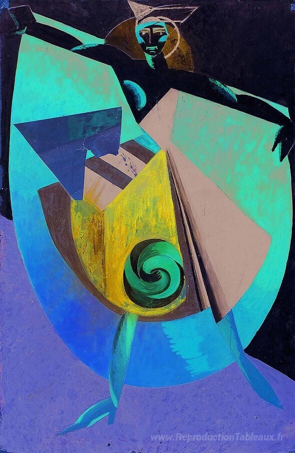 Nous vous proposons une reproduction artisanale sur toile du célèbre tableau 'Conception de costumes' de Aleksandra Ekster, provenant du Musée de la Reproduction.