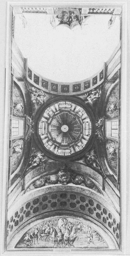 Nous vous proposons une reproduction artisanale sur toile du célèbre tableau 'Conception de décoration de plafond d'une salle du château d'Uja' de Bernardo Bellotto, provenant du Musée de la Reproduction.
