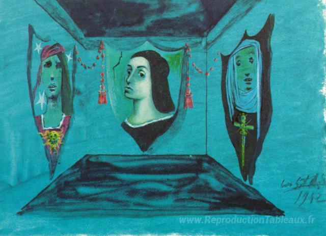 Nous vous proposons une reproduction artisanale sur toile du célèbre tableau 'Conception de l'ensemble de «Roméo et Juliette»' de Salvador Dali, provenant du Musée de la Reproduction.