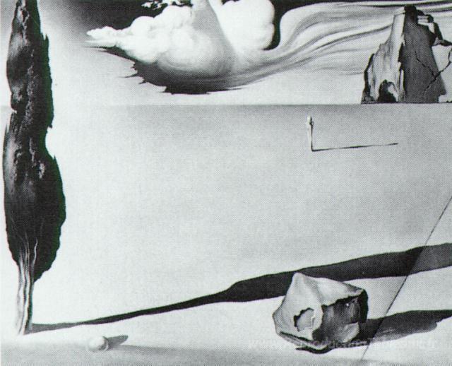 Nous vous proposons une reproduction artisanale sur toile du célèbre tableau 'Conception de l'ensemble du film «Spellbound»' de Salvador Dali, provenant du Musée de la Reproduction.