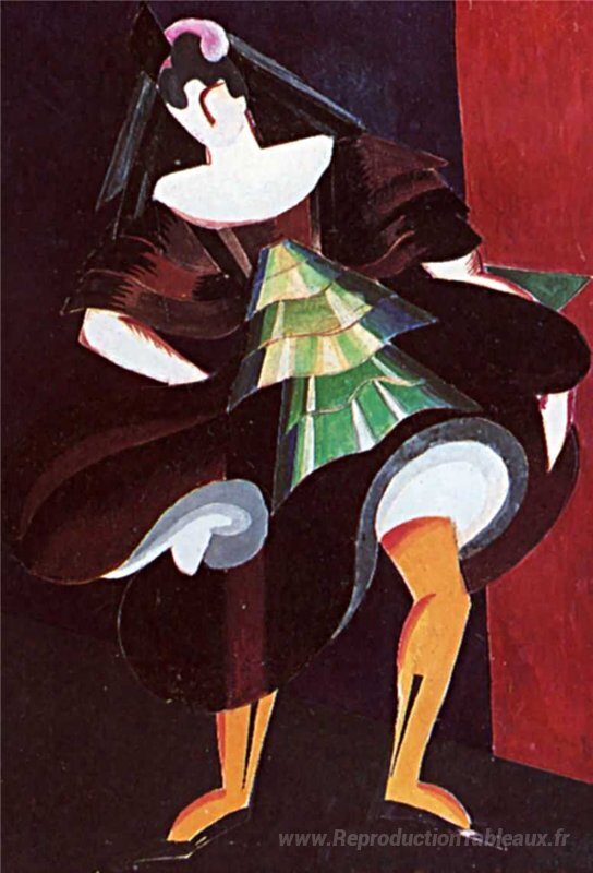 Nous vous proposons une reproduction artisanale sur toile du célèbre tableau 'Costume des femmes pour la danse espagnole' de Aleksandra Ekster, provenant du Musée de la Reproduction.