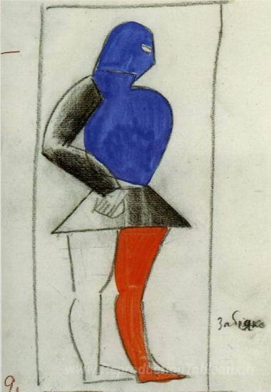 Nous vous proposons une reproduction artisanale sur toile du célèbre tableau 'Costume pour la victoire sur le soleil. Jeune coq' de Kazimir Malevich, provenant du Musée de la Reproduction.