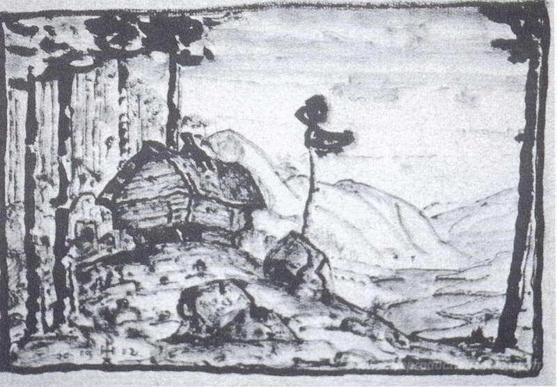 Nous vous proposons une reproduction artisanale sur toile du célèbre tableau 'Coupe dans les montagnes' de Nicholas Roerich, provenant du Musée de la Reproduction.