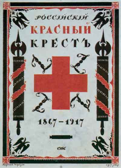 Nous vous proposons une reproduction artisanale sur toile du célèbre tableau 'Couverture du livre «La Croix-Rouge russe. 1867-1917. '' de Heorhiy Narbut, provenant du Musée de la Reproduction.