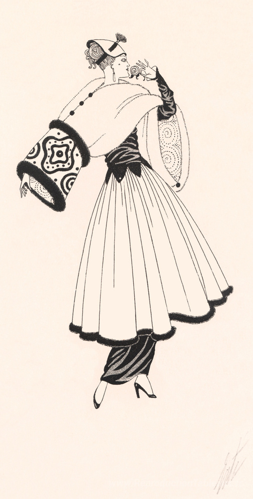 Nous vous proposons une reproduction artisanale sur toile du célèbre tableau 'Création du soir' de Erte, provenant du Musée de la Reproduction.