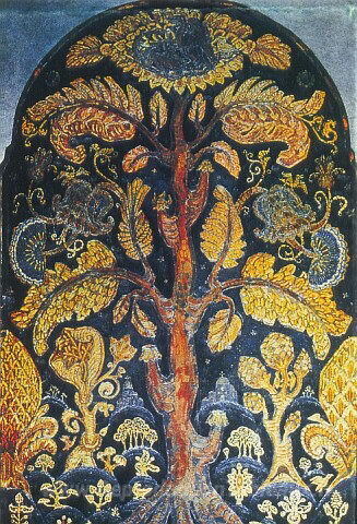 Nous vous proposons une reproduction artisanale sur toile du célèbre tableau 'Croquis de la mosaïque au monument à Kuinji' de Nicholas Roerich, provenant du Musée de la Reproduction.