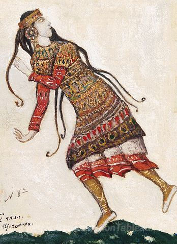 Nous vous proposons une reproduction artisanale sur toile du célèbre tableau 'Croquis des costumes pour "Le rite du printemps"' de Nicholas Roerich, provenant du Musée de la Reproduction.