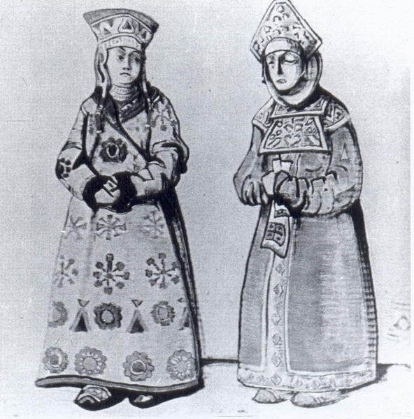 Nous vous proposons une reproduction artisanale sur toile du célèbre tableau 'Croquis des costumes pour "Snow Maiden"' de Nicholas Roerich, provenant du Musée de la Reproduction.