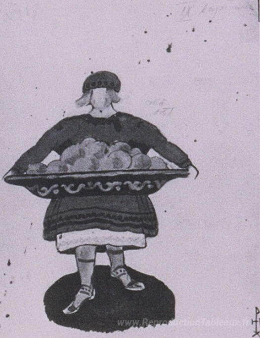 Nous vous proposons une reproduction artisanale sur toile du célèbre tableau 'Croquis des costumes pour "Snow Maiden"' de Nicholas Roerich, provenant du Musée de la Reproduction.
