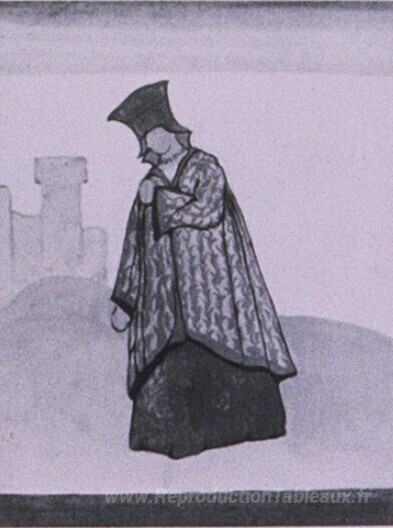 Nous vous proposons une reproduction artisanale sur toile du célèbre tableau 'Croquis des costumes pour "Snow Maiden"' de Nicholas Roerich, provenant du Musée de la Reproduction.