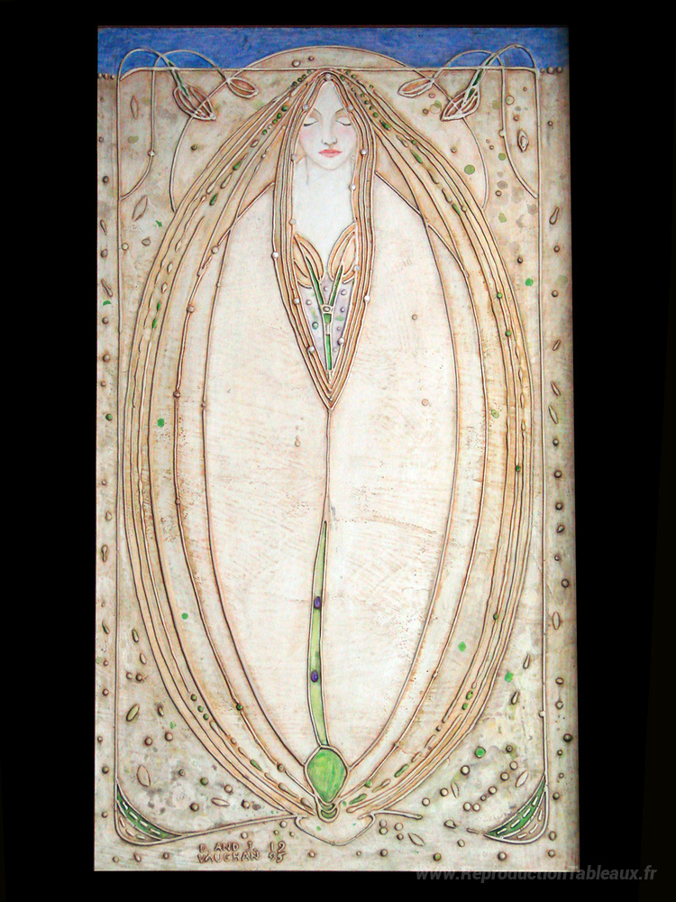 Nous vous proposons une reproduction artisanale sur toile du célèbre tableau 'Décor de la Salle à Manger (maison pour un amateur d'art, Glasgo' de Charles Rennie Mackintosh, provenant du Musée de la Reproduction.