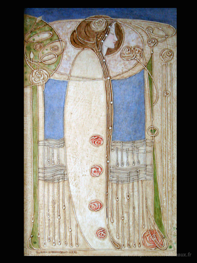 Nous vous proposons une reproduction artisanale sur toile du célèbre tableau 'Décor de la Salle à Manger (maison pour un amateur d'art, Glasgo' de Charles Rennie Mackintosh, provenant du Musée de la Reproduction.