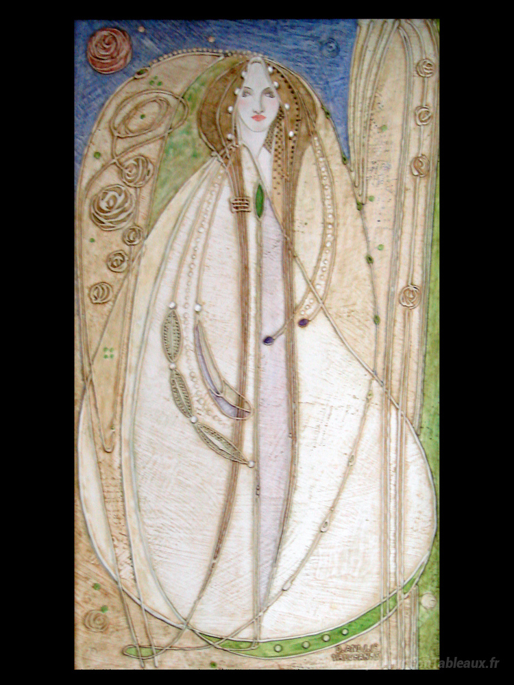 Nous vous proposons une reproduction artisanale sur toile du célèbre tableau 'Décor de la Salle à Manger (maison pour un amateur d'art, Glasgo' de Charles Rennie Mackintosh, provenant du Musée de la Reproduction.