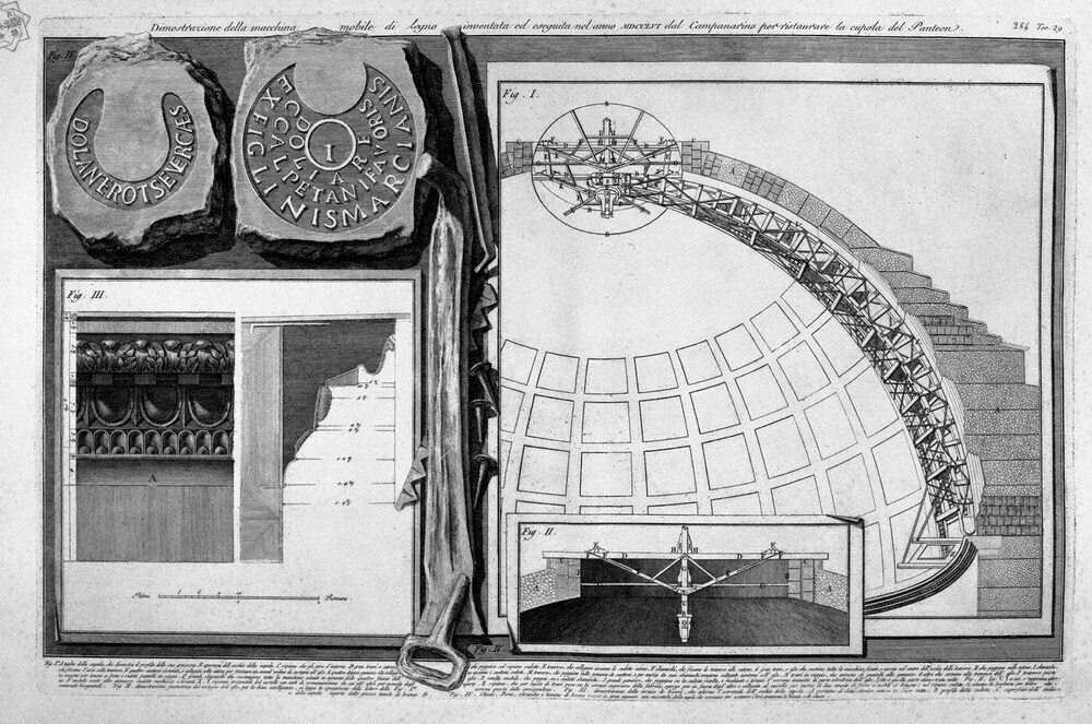 Nous vous proposons une reproduction artisanale sur toile du célèbre tableau 'Démonstration de certaines parties de la brique d'opéra, qui con' de Giovanni Battista Piranesi, provenant du Musée de la Reproduction.