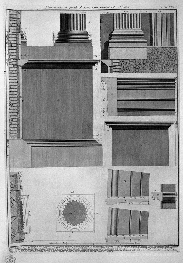 Nous vous proposons une reproduction artisanale sur toile du célèbre tableau 'Démonstration en grandes parties de l'intérieur du panthéon' de Giovanni Battista Piranesi, provenant du Musée de la Reproduction.