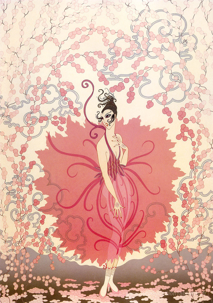 Nous vous proposons une reproduction artisanale sur toile du célèbre tableau 'Dame rose' de Erte, provenant du Musée de la Reproduction.